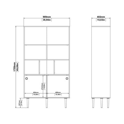 Grāmatplaukts RomeAr bīdāmām durvīm, ar ozolkoka imitāciju, no skaidu plāksnes, virsmas apdare: folija, balts, platums 99 cm, augstums 176 cm, dziļums 40 cm