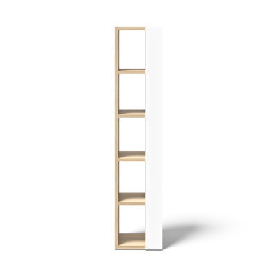 Grāmatplaukts EllaAr ozolkoka imitāciju, no skaidu plāksnes/no šūnveida paneļiem, virsmas apdare: melamīns, balts/dabīga toņa, platums 40 cm, augstums 188 cm, dziļums 34 cm