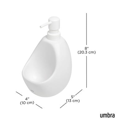 Umbra ziepju dozators Joey ar savu eleganto un moderno izskatu lieliski papildinās jebkuras virtuves virsmu vai vannas istabas izlietni.