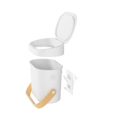 Komplektā ir iekļauta līmējošā pamatne, lai to varētu viegli un bez instrumentiem uzstādīt – skapī, pie sienas vai uz flīzēm aiz virtuves letes. Noņemamā apmale, vāks un rokturis atvieglo konteinera pielāgošanu. Un, kad ir pienācis laiks to tīrīt, ielieciet to (bez roktura) trauku mazgājamajā mašīnā.