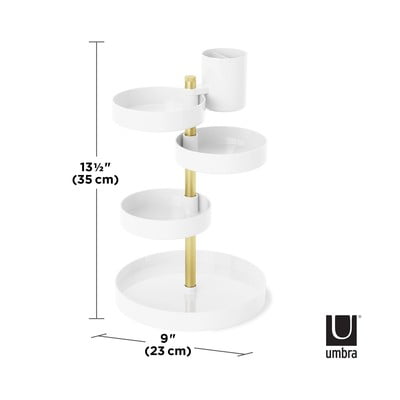 Pateicoties centrālajai joslai, šī organizatora plauktus var pagriezt, lai ērti piekļūtu visiem uzglabātajiem kosmētikas līdzekļiem.