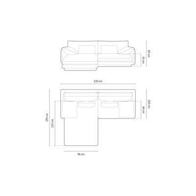 Samta, ar kreiso stūri/ar zvilni, balts, mājdzīvniekiem piemērots/pret traipiem noturīgs, trīsvietīgs, platums 220 cm