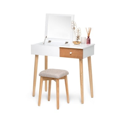 Viegli samontēt, galds izskatās labi, tikai spogulis ir zems un man ir jānoliecas, lai to labi redzētu.