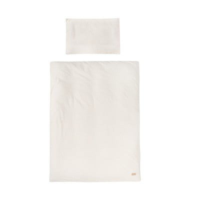 bērnu gultas veļa ir viegli kopjama. Tā ir izgatavota no 80% ilgtspējīga un elpojoša muslīna un 20% poliestera (frotē punktiņi).