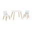 Šajā bērnu mēbeļu komplektā ir galds un divi krēsli, kas paredzēti ērtai un drošai sēdēšanai. Tā kompaktais izmērs padara to ideāli piemērotu bērna istabai vai rotaļu zonai. Krēslu sēdekļa augstums ir 28 cm, un to kopējie izmēri ir 54 × 26,5 × 26,5 cm. Galda izmēri ir 49 × 60 × 50 cm.