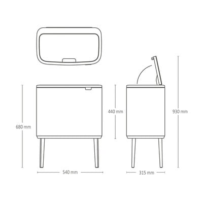 Kompaktais dizains nodrošina, ka atkritumu tvertne var ietilpt mazākās telpās, piemēram, cieši pie sienas vai stūrī. Piestiprināmās kājas ar regulējamu neslīdošo apakšējo daļu to arī paceļ, efektīvi saudzējot jūsu muguru un atvieglojot tīrīšanu zem tās.