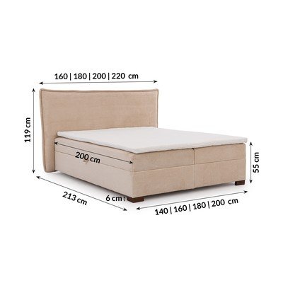 200x200 cm, ar veļas kasti, polsterēta, ar matraci/ar iekļautu matrača pārvalku, velveta, bēša