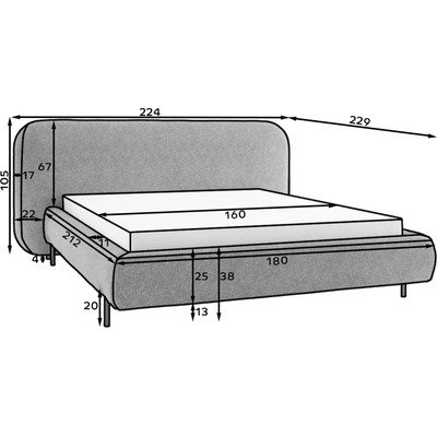 160x200 cm, ar veļas kasti, ar redelēm, polsterēta, no buklē auduma, bēša