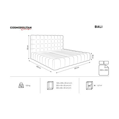 Pelēka polsterēta divvietīga gulta ar veļas kasti un režģi 200x200 cm Bali – Cosmopolitan Design