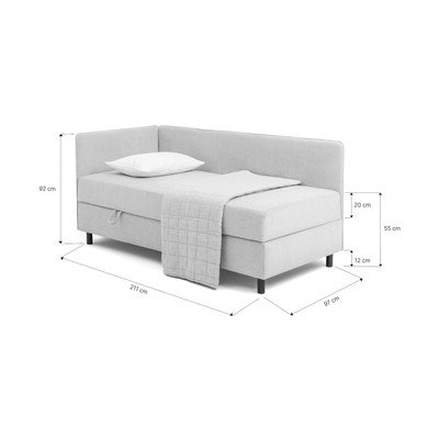Dizaina vienguļamā stūra gulta ar kabatas atsperu matraci, praktisku uzglabāšanas telpu ar piekļuvi no sāniem un maināmu galvgali, ko var novietot kreisajā vai labajā pusē. Ļoti vienkārša montāža, augstas kvalitātes, izturīgi materiāli un augsta kravnesība padara šo gultu par ideālu izvēli ikdienas komfortam un stilīgam interjeram.