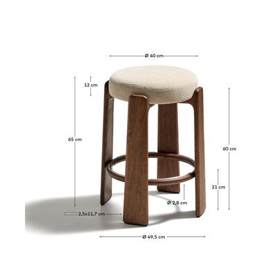 Šīs taburetes konstrukcija ir veidota no oša masīvkoka, kas nāk no atbildīgi apsaimniekotiem mežiem, ko apliecina FSC™ 100% sertifikāts. Ērtais, apaļais sēdeklis ir apvilkts ar šenila audumu ar izteiktu tekstūru. Audums ir izgatavots no pārstrādāta poliestera un tam ir Global Recycled Standard un OEKO-TEX® STANDARD 100 sertifikāti, kas apliecina ekoloģiski drošu un atbildīgu ražošanu.