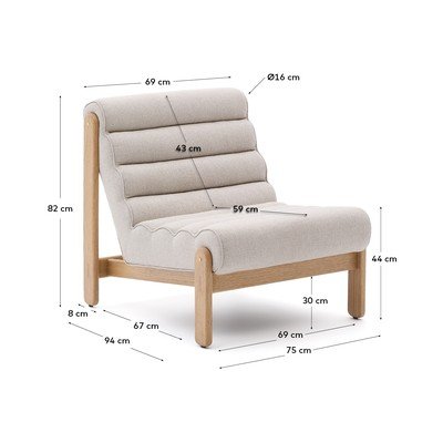 Atzveltne un sēdeklis ar raksturīgām horizontālām vīlēm ir pildīti ar vidēja blīvuma putām (30 kg/m³), kas nodrošina ergonomisku sēdēšanu. Poliestera audums ar vilnas efektu piešķir vizuālu siltumu un ir patīkams pieskārienam, papildinot krēslu, kas radīts maksimālam komfortam.