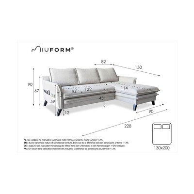 Salokāms/ar uzglabāšanas vietuAr labo stūri/ar zvilniBēšsTrīsvietīgsPlatums 228 cmDziļums 150 cmSēdekļa dziļums 54 cm