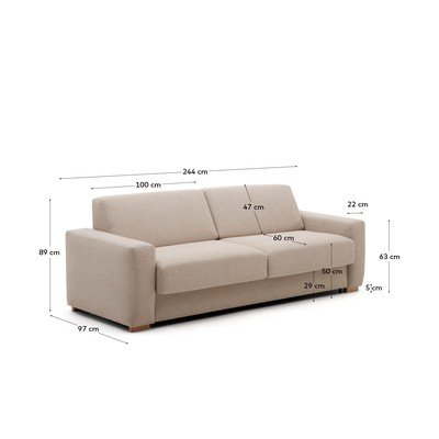 Kave Home dīvāns Anley ir izvelkams, turklāt tam ir viskoelastīgs matracis, tāpēc dīvāns var lieliski kalpot arī kā pilna izmēra gulta.