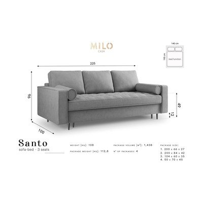 "Milo Casa Santo" izvelkamais dīvāns ir pietiekoši liels, lai nodrošinātu lielisku atpūtas vietu visai ģimenei. Šī zīmola audumi tiek rūpīgi testēti, lai nodrošinātu izturību, komfortu un pievilcību. Dīvāna pārklājumam ir izmantots pieskārienam tīkams, nodilumizturīgs audums ar vieglu spīdumu.