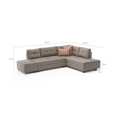 Salokāms, ar labo stūri/L veida, pret traipiem noturīgs, bēšs, vairākvietīgs, platums 280 cm, dziļums 206 cm, sēdekļa dziļums 63 cm
