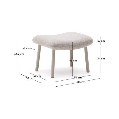 Kave Home kāju soliņš Inari izceļas ar modernu dizainu. Tas ir iedvesmojies no klasiskā atpūtas krēsla, taču ir pārinterpretēts ar tīrām ģeometriskām līnijām un izliektiem apjomiem, piešķirot tam atšķirīgu izskatu.