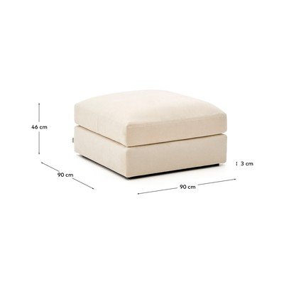 Kave Home kāju soliņš Alea ir elegants un funkcionāls interjera papildinājums. Tā vienkāršais, bet izsmalcinātais dizains ar taisnām līnijām un izteiksmīgu šuvi uz augšējā spilvena piešķirs jūsu telpai mūsdienīgu izskatu.