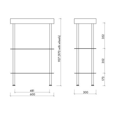 Melns metāla plaukts uz riteņiem 60x97x30 cm Nolle – noo.ma