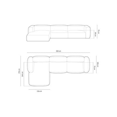 No šenila audumaAr kreiso stūri/ar zvilniBēšsČetrvietīgsPlatums 330 cm