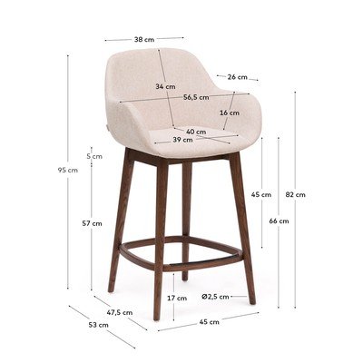 Bāra krēsls KonnaAr roku balstiem, polsterēts, no šenila, bēšs, sēdekļa augstums 66 cm