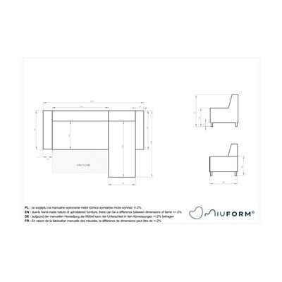 Piezīme: dīvānam ir maināms stūris.