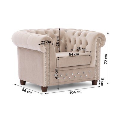 Bēšs samta Chesterfield atpūtas krēsls York Blik – Ropez