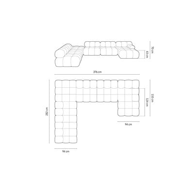 Samta, ar labo stūri/U veida, bēšs, vairākvietīgs, platums 376 cm