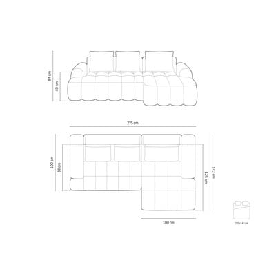 Samta, salokāms/ar uzglabāšanas vietu, ar labo stūri/ar zvilni, bēšs, četrvietīgs, platums 275 cm