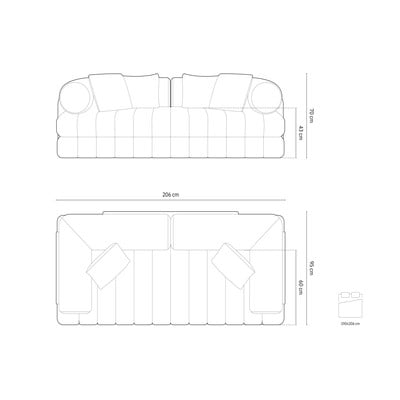 Samta, salokāms, bēšs, ūdensizturīgs/mājdzīvniekiem piemērots, divvietīgs, platums 206 cm