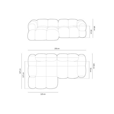Samta, ar kreiso stūri/ar zvilni, bēšs, trīsvietīgs, platums 250 cm