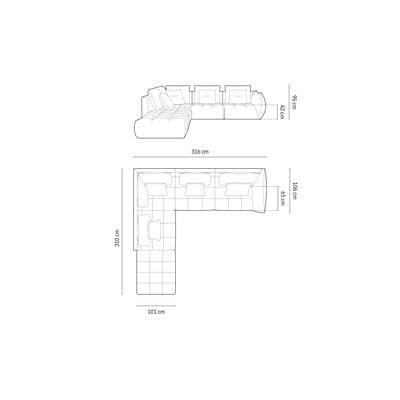 Samta, ar kreiso stūri/L veida, mājdzīvniekiem piemērots/pret traipiem noturīgs, bēšs, vairākvietīgs, platums 316 cm