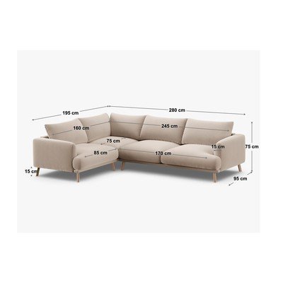 Samta, ar kreiso stūri/L veida, bēšs, ūdensizturīgs, četrvietīgs, platums 280 cm