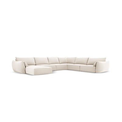 Bēšs samta stūra dīvāns (ar kreiso stūri/U veida) Vanda – Mazzini Sofas