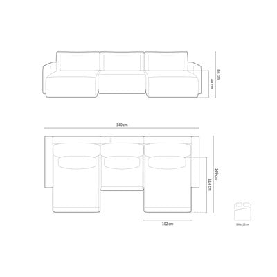 Samta, salokāms/ar uzglabāšanas vietu, U veida, bēšs, ūdensizturīgs/mājdzīvniekiem piemērots, vairākvietīgs, platums 340 cm