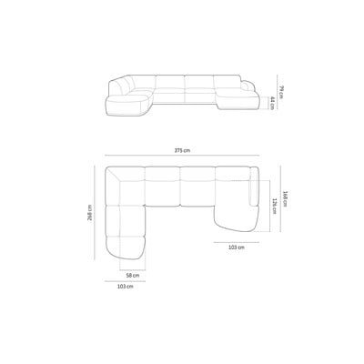 Stūra dīvāns ErinSamta, U veida, bēšs, vairākvietīgs, platums 375 cm