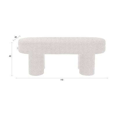 No buklē auduma, polsterēts, ar uzglabāšanas vietu, bēšs, platums 110 cm, dziļums 40 cm, augstums 42 cm