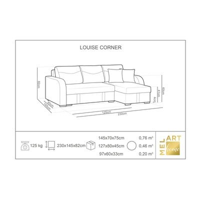 Stūra dīvānsNo šenila auduma, salokāms/ar uzglabāšanas vietu, ar labo stūri/ar kreiso stūri/ar maināmu stūri/ar zvilni, balts, trīsvietīgs, platums 230 cm, dziļums 80 cm, sēdekļa dziļums 57 cm
