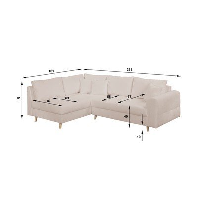 No buklē auduma, ar kreiso stūri/L veida, bēšs, trīsvietīgs, platums 231 cm