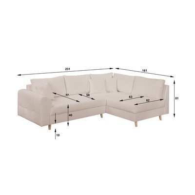 No buklē auduma, ar labo stūri/L veida, bēšs, trīsvietīgs, platums 231 cm