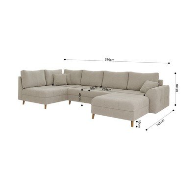 No buklē auduma, ar labo stūri/U veida, bēšs, vairākvietīgs, platums 310 cm