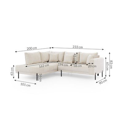 No šenila auduma, ar kreiso stūri/L veida, bēšs, mājdzīvniekiem piemērots/pret traipiem noturīgs, četrvietīgs, platums 233 cm