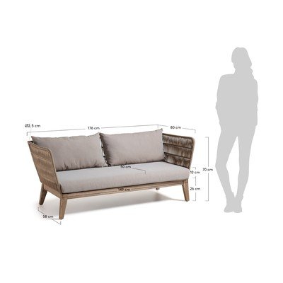 Dārza dīvāns BellanoTrīsvietīgs, brūns/bēšs, slodze 250 kg, platums 176 cm, augstums 70 cm, dziļums 80 cm