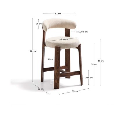 Zīmola Kave Home bāra krēsls Granite ir elegants un praktisks papildinājums jūsu modernajai virtuvei vai ēdamistabai. Šim krēslam ir vizuāli pievilcīga, noapaļota atzveltne un polsterēts sēdeklis, kas nodrošina komfortu.