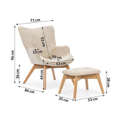 Piezīme: kāju balsta izmēri ir 53 x 35 x 38 cm (platums x dziļums x augstums).