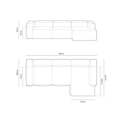 Velveta, ar labo stūri/ar zvilni, bēšs, četrvietīgs, platums 304 cm
