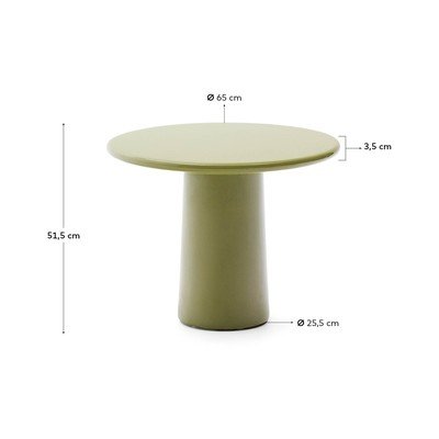 Zīmola Kave Home betona apaļš dārza kafijas galdiņš Albanella ir harmonisks stila un praktiskuma apvienojums. Šis apaļais galdiņš ar spīdīgu virsmu ir izgatavots no GFRC – kompozītmateriāla, kas sastāv no stikla šķiedras armēta cementa. Tas nodrošina galdiņa vieglumu, izturību pret nodilumu un vienlaikus robustu konstrukciju.