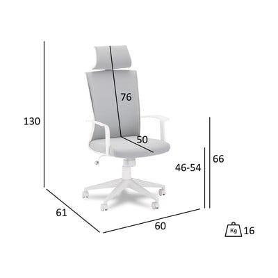 Ar regulējamu augstumu/ar regulējamu atzveltni/ar roku balstiem, gaiši pelēks, slodze 130 kg