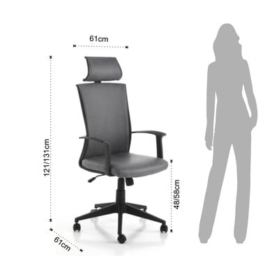 Biroja krēsls OntarioPolsterēts, ar riteņiem/ar regulējamu augstumu/ar roku balstiem, pelēks, slodze 114 kg, sēdekļa augstums 48-58 cm