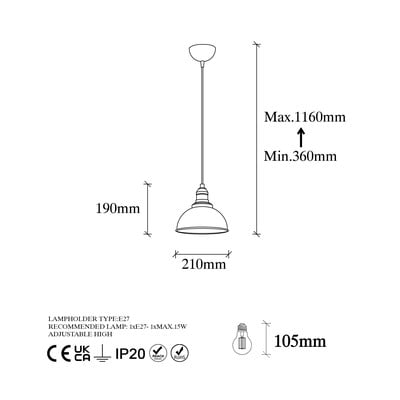 Piekaramā lampa Varzan
